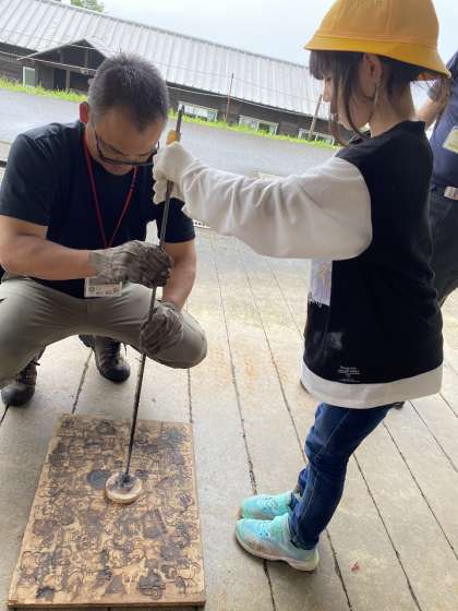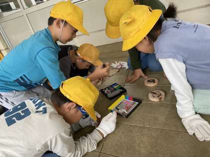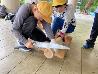 のこぎりを使って丸太を切って、コースターを作りました。初めてのノコギリに苦戦する子も多かったですが、みんなで協力しながら、満足するものが作れたようです。