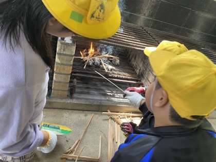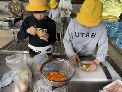 野外炊飯がスタートしました。みんなで声をかけ合いながら、食材を切ったり火を起こしたりと、がんばっています。