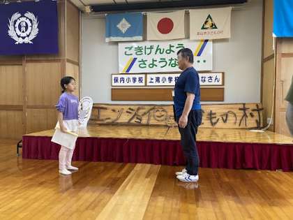 児童代表挨拶では、野外炊飯で教え合って美味しいカレーを作ったこと等を話しました。