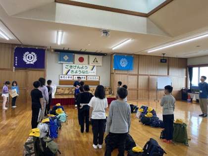 児童代表挨拶では、野外炊飯で教え合って美味しいカレーを作ったこと等を話しました。