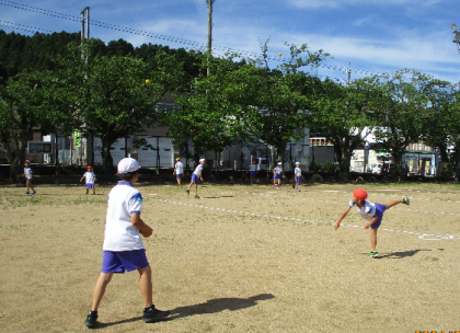 朝の涼しい時間に、ソフトボール投げ、50m走、走り幅跳びの中から自分で選んだ種目に取り組みました。