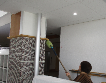 もうすぐ、1学期も終了です。そこで、教室や廊下、玄関等、1学期に使った場所や物に感謝し、掃除をしました。日頃なかなかできない細かい所や高い所まできれいにしました。