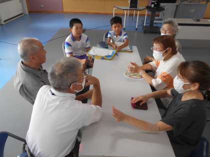 今日のカフェ和いわいでは、地域の方々にインタビューや質問をして交流しました。文字通り「わいわい」楽しくお話しながら昔の上滝の様子について知ることができました。