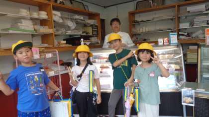 今日は、生活科の学習「まちたんけんパート2」で、上滝駅方面に行きました。3つのグループに分かれて、水岡商店、寺島清月堂、フィールド・ヒルの3つのお店に行きました。今回は、自分たちで質問の内容を考え、直接お店の方に質問しました。どのお店の方も、子供たちの質問に分かりやすく笑顔で答えてくださりました。子供たちは、質問できたこと、分かったことがいくつもあったことで、満足そうでした。