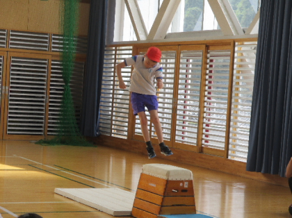 1・2年生は、マット、跳び箱、平均台を使った運動遊びの学習です。