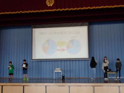 金曜日の学習参観後にある学校保健委員会で、保健委員会の児童が「すいみんメディアコントロールデー」の結果について発表します。写真はその練習の様子です。「みんなに伝わるように話そう」「みんながメディアについて意識できるように伝えたい」いう思いをもって精一杯取り組んでいます。