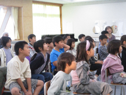 次に、米福さんの小噺を聞いた後、各学年の代表が聞いたばかりの小噺を体験。