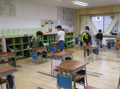 担当場所がきれいになるよう、班のみんなで協力しています。