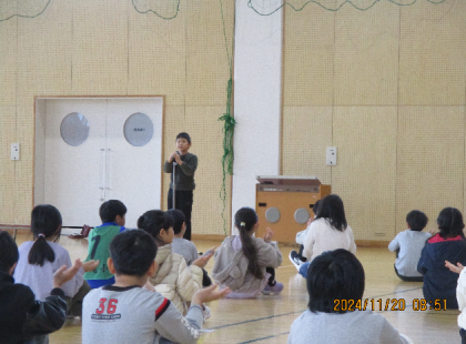声をあげながら笑ったり異学年の人とグループになったりしながらゲームを楽しんでいる姿、かみだきショータイムで一人で堂々と歌う姿や真剣に聴く姿がすてきでした。全校合唱では、みんなの声が響き合い体育館いっぱいに広がりました。