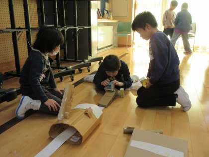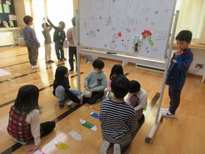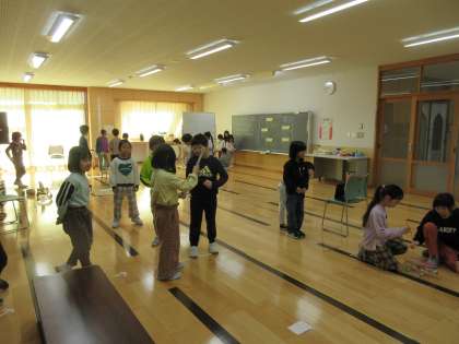 今日の2時間目は、2年生が生活科でつくった「おもちゃの森」で1年生さんに遊んでもらいました。青空ルームにそれぞれのおもちゃコーナーをつくり、遊び方も自分たちで考えました。1年生に分かりやすいように、最初におもちゃの遊び方を説明して、自由に遊んでもらいました。子供たちは、自分たちがつくったおもちゃが「楽しいかった」と言ってもらってとても喜んでいました。
