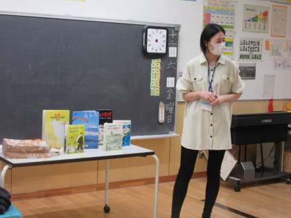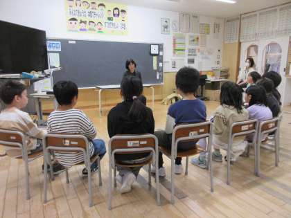 今日は、大山図書館の方が上滝小学校に来てくださり、ストーリーテリング(耳で聞くお話)「七羽のカラス」とブックトークで「空」をテーマにした本を6冊紹介してくださいました。「七羽のカラス」は、カラスにされた兄弟を幼い妹が助ける話でした。これからどうなるのだろうと、ドキドキしながら聴いているようでした。ブックトークでは、「サンタクロースの春休み」は、どんな休みだろうとワクワクしている様子が分かりました。ただ、事件が起こり、どうなるのでしょうか?・・・本の楽しさが伝わりました。
