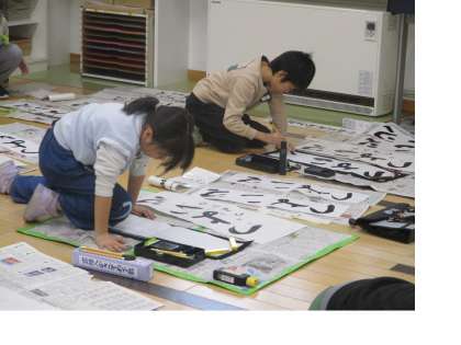 書写の時間に書初大会で書く「つよい心」を練習しました。手本をよく見て、一文字ずつ真剣に書いていました。1枚書き終わると、「次はここを気をつけるぞ」と確認しながら、取り組んでいました。