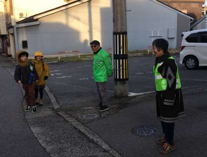それは、毎朝、地域の方が子供たちを見守ってくださっているからです。写真以外でも、子供たちが安全に登校できるようにと地域の方が見守ってくださっています。