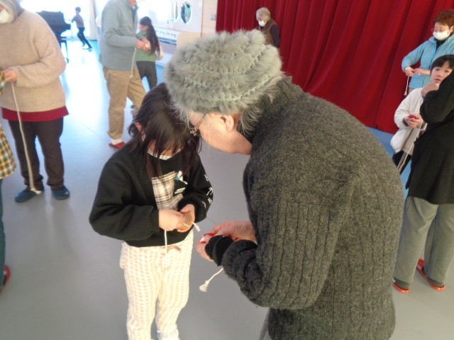 今日は、子供たちが楽しみにしていたカフェ和いわいがありました。「昔の遊びであそぼう!」では、けん玉、だるまおとし、お手玉、こま、おはじきのグループに分かれて、地域の方々に教えてもらったり、一緒に遊んだりしました。「コツを教えてもらったら上手くできた!」「片手でお手玉3個まわしている人がいて、すごかったよ!」等と嬉しそうに話していました。とても楽しかったようです。地域の皆様、ありがとうございました。