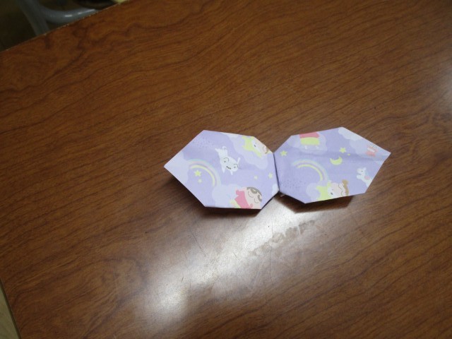 4年生は「これがわたしです」で教えてもらった折り紙の作品を落下させていますす。手を離すとひらひら舞ながらきれいに落ちていきます。とってもきれいでした。