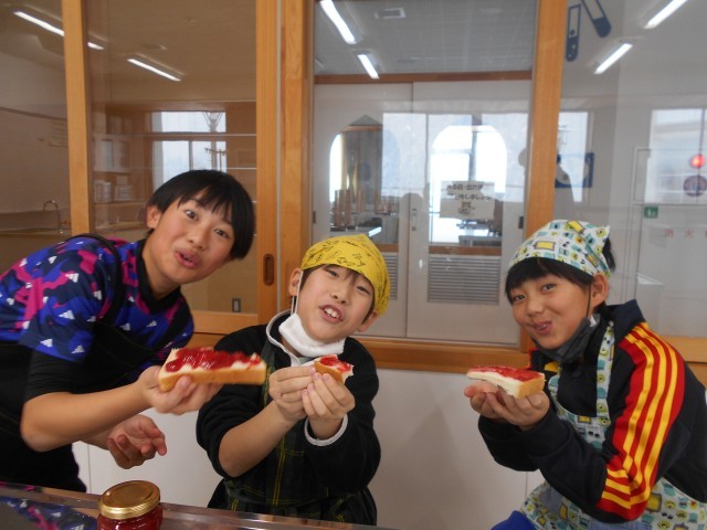 先週に引き続き、えっちゅう風土の方に来ていただき、いちごジャムをつくりました。いちごを鍋に入れてかき混ぜているうちに、学校中に甘いにおいが広がっていました。おいしいジャムを作ることができ、子どもたちは満足した様子でした。
