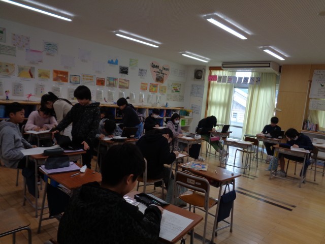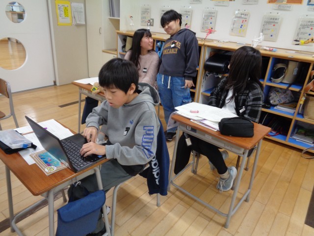 友達と相談し合ったり、クロームブックで単語を調べたりしながら、「I want to join the cooking club」や「I want to be a engineer」等と自分のこれからについて考えて英語で表現することができました。また、分からない単語があった時には、すぐに先生に聞くのではなく、まずは自分で調べてみるという姿が多く見られ、素敵でした。