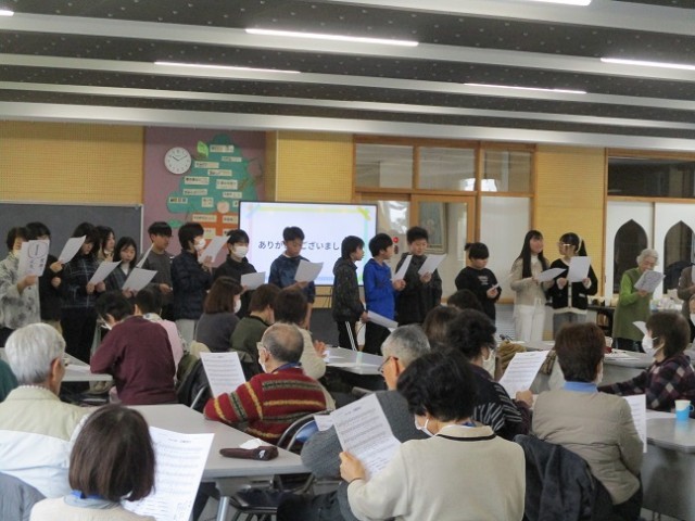 今日は、6年生にとって最後のカフェ和いわい。地域の方々に自分たちの成長と6年間の感謝の気持ちを伝えました。そして、カフェ和いわいのみなさんと一緒に歌を歌いました。和やかな温かいひとときでした。