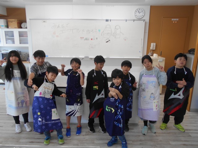 家庭科の時間に取り組んできたエプロンが完成しました。一人一人丁寧にミシンでぬったり、工夫を凝らしたポケットや飾りを付けたりして、すてきなエプロンができました。今日の給食の時間にはさっそく使用する児童もおり、できた作品に満足した様子でした。