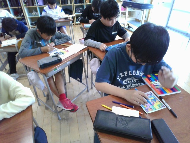 色のバランスを考えながら細かいところまでこだわって色をぬる子や、新しいものをどんどん作り出す子など、それぞれの取り組み方で素敵な作品ができあがりました。