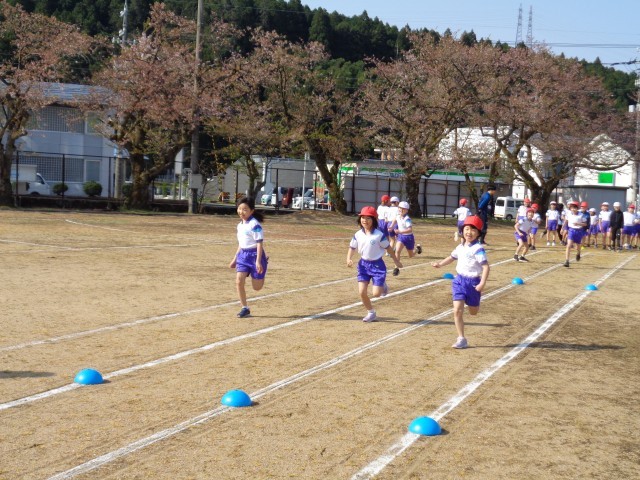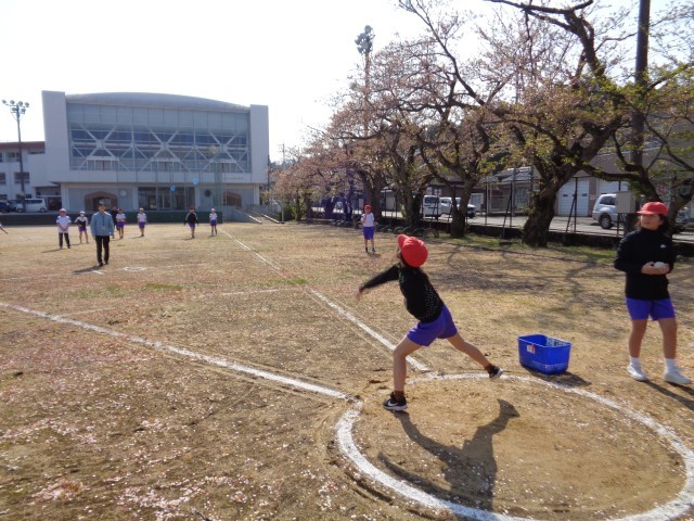 今日は、低学年が「跳ぶ」、中学年が「走る」、高学年が「投げる」の練習をしました。外で思い切り体を動かすことができてとても楽しそうな子どもたちでした。