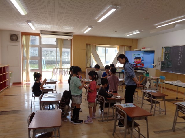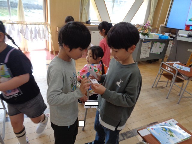 1年生は国語の時間に自己紹介カードを作り、お友達と交換しました。