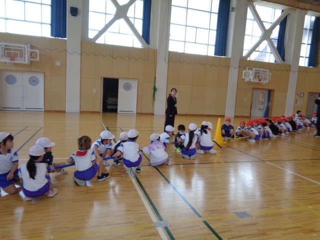 さわやかタイムに上学年と下学年に分かれて綱引きの練習をしました。