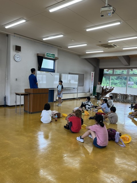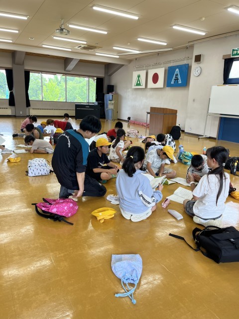 2日目の活動の振り返りと退所式の様子です。2日間でたくさんの友達の優しさを発見し、様々な活動を通してできることが増えました。18人の仲間のよさを更に実感できた宿泊学習でした。