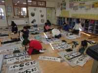 書初めの練習が始まりました。今日は2回目です。3年生は、初めて毛筆での書初めで...