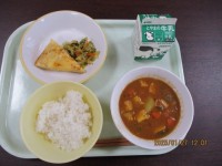 今日の献立は、「ごはん、牛乳、かぼちゃコロッケ、大豆の変身汁、甘酢和え、みかん...