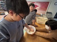 ピザの生地づくりをしています。どの班も上手くまとまってきました。これからこの生...