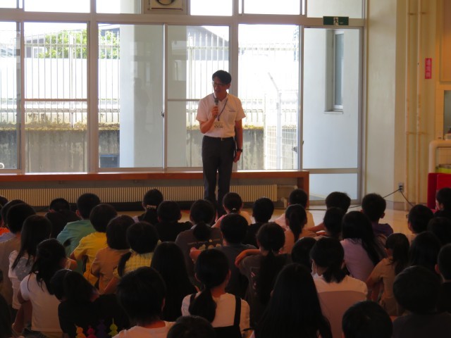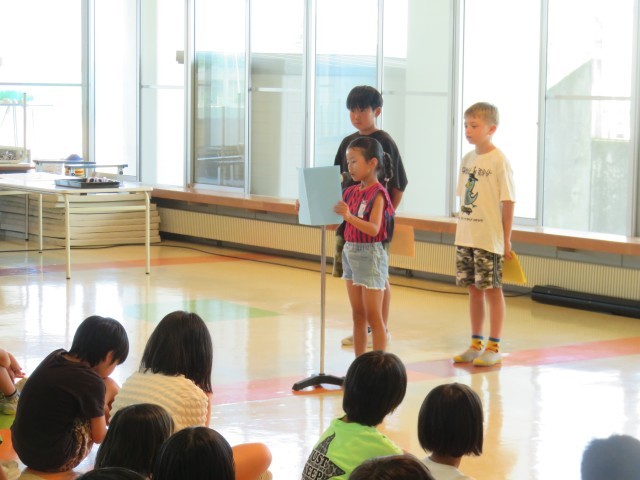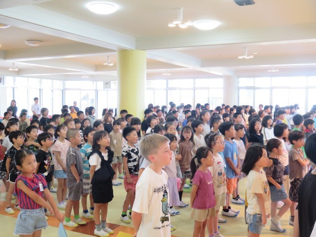 気温が上がり暑い中でしたが、校長先生や児童代表の話をしっかり聞いたり、校歌を歌ったりする姿が見られました。