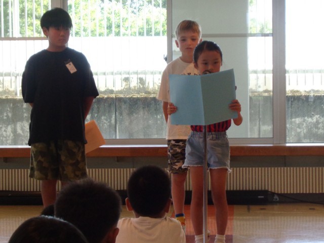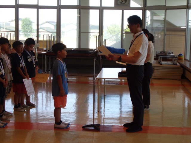 2年生 1学期終業式 公開日 2025/07/24 更新日 2025/07/24 2年生 1学期の終業式を行いました。校長先生のお話をよい姿勢で聞くことができました。また、代表児童が1学期にがんばったことを発表しました。緊張したと思いますが、はっきりとした声で、全校に届くように話すことができました。受賞伝達式も行われ、運動面で活躍した児童のがんばりを称えました。 +2