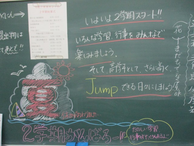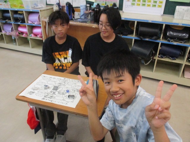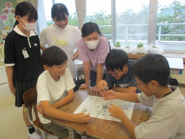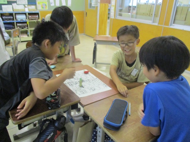 教室では、夏休みの宿題や作品応募を提出しました。夏休みの頑張りがわかる、素敵な作品や自由研究がたくさんありました。その後、夏休み・2学期がテーマのすごろくをしました。夏休みの思い出や2学期のめあてなど、楽しんで話をしました。