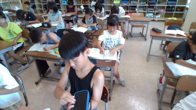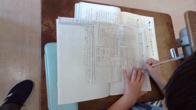 夏休みの思い出をマインドマップに書き表しました。たくさん書きだしたマインドマップから、夏休みの思い出を文章にし、友達と見せ合いながら学習しました。