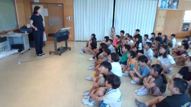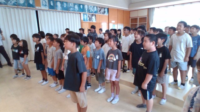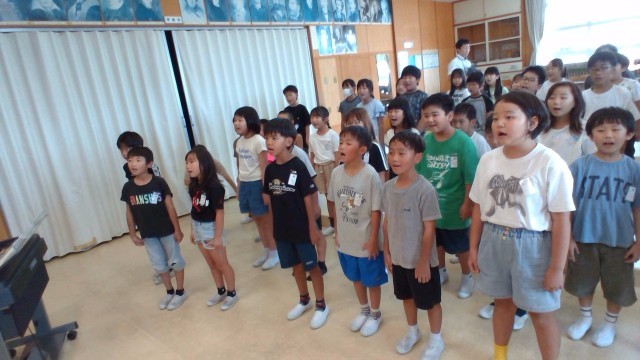 3、4年生で集まり、初めて音楽会の練習をしました。まずは発声練習をし、1曲練習しました。元気で明るい曲調ながら、きれいな歌声を意識して練習に取り組みました。