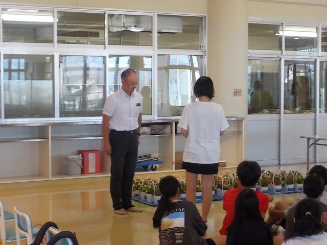 9月2日人権の花 終了式を行いました。夏の期間大切に育てていただきありがとうございます。きれいな花が咲きました。