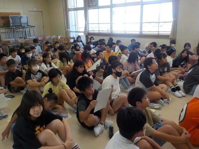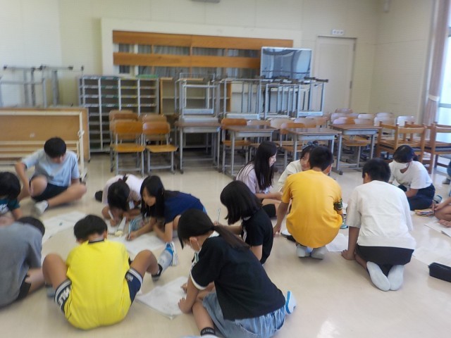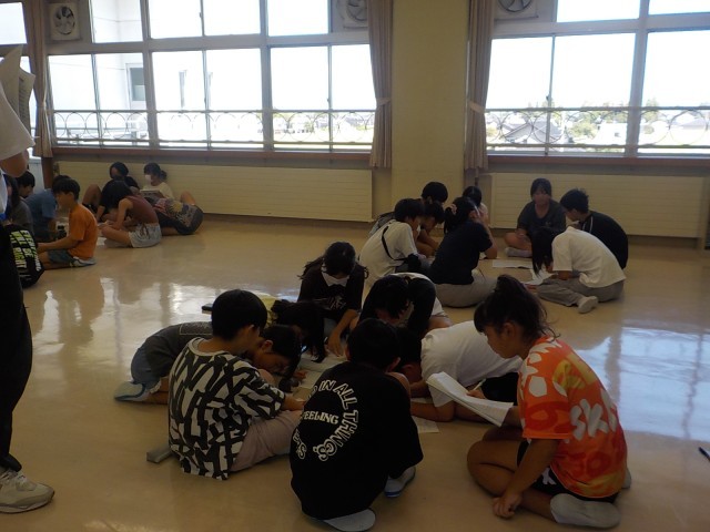 先日、5,6年生合同で宿泊学習の打合せを行いました。各班ごとに集まって班長や活動リーダーを決めました。