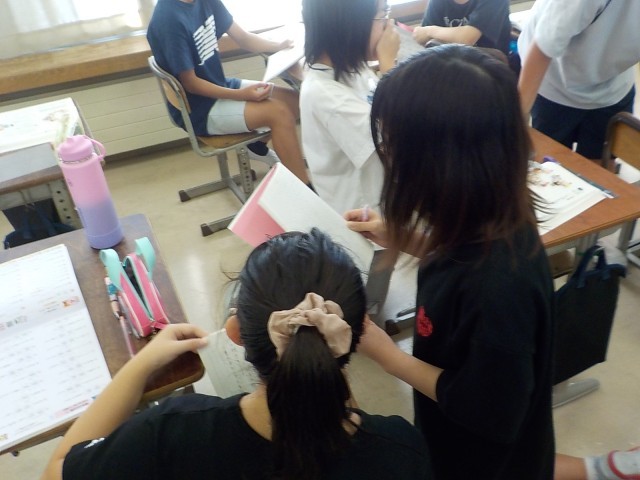 学習の時間は、友達と意見を交流しました。自分が話すだけでなく、友達の話をじっくり聞いたり質問をしたりしました。