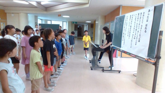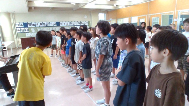 音楽会に向けて、2曲目「あしたははれる」の練習をスタートしました。歌詞を覚えながら、歌い出しをそろえたり声色に気を付けたりしながら練習に取り組みました。