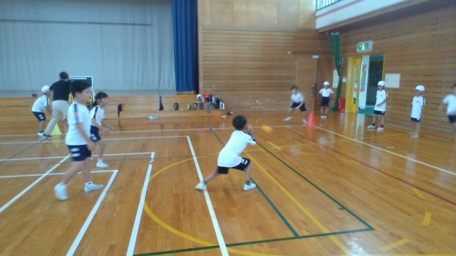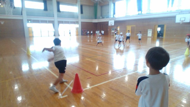 体育館で野球のルールを覚えるための練習としてハンドベースボールをしました。友達とルールを確認したり、アドバイスし合ったりするなどして、運動を楽しみました。