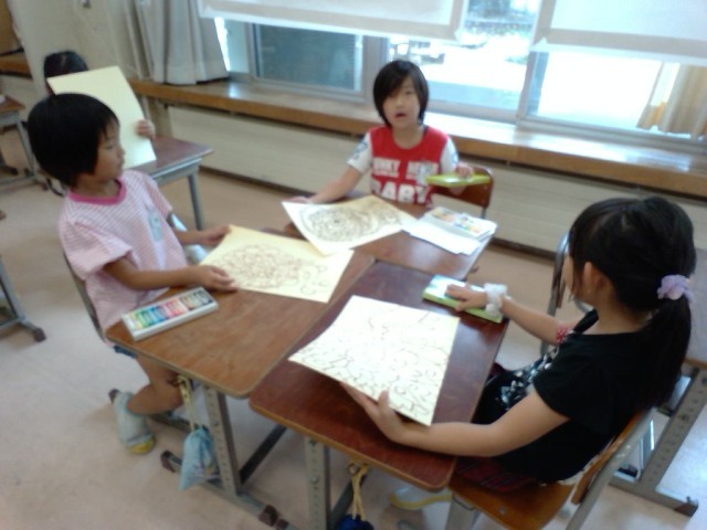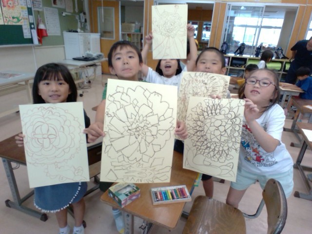 図画工作科では、自分が想像した花を描きました。いろいろな花びらの形を組み合わせたり、大きさを工夫したりして、自分だけの素敵な花を咲かせることができました。来週、色塗りをして仕上げます。