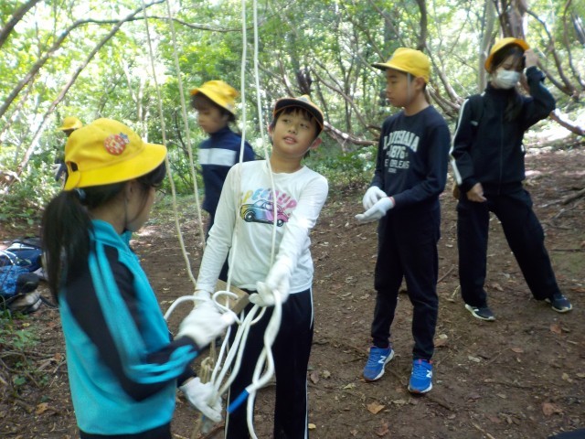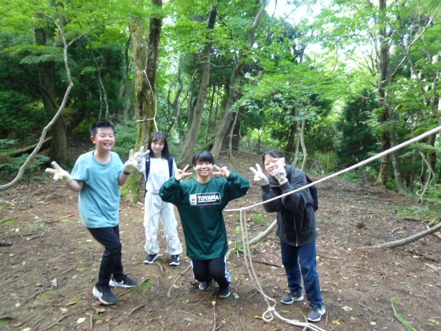 ワイルド遊びでは、ロープを使って、ターザンロープやブランコ等で遊びました。