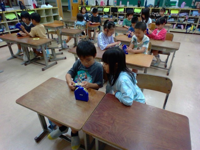時計をみて、何時か、何時半かをよんだり、時計で時刻を表したりしました。友達と問題を出し合って、繰り返し時計をよみました。