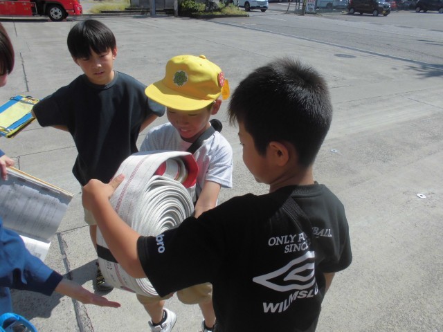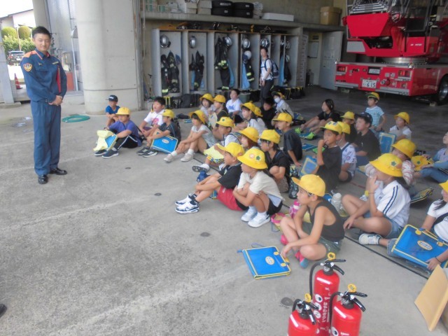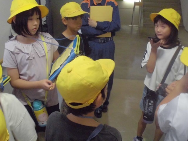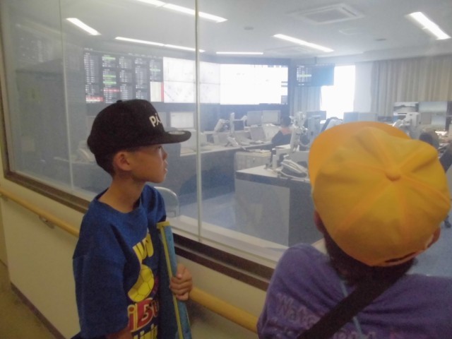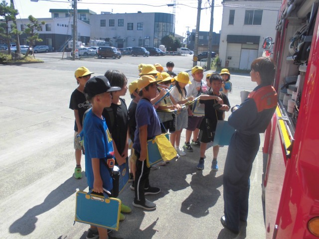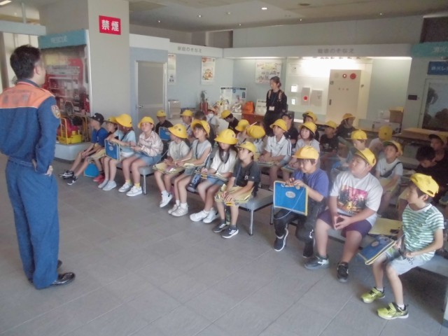 午後からは消防署に行きました。子供たちは、消防車や指令室の様子を見学し、通報体験なども行い、くらしを守る人たちの思いに触れました。