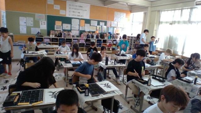 書写では、「麦」という字を習字で書いています。前回書いた自分の字を超えて上手く書けるように、集中して取り組んでいます。