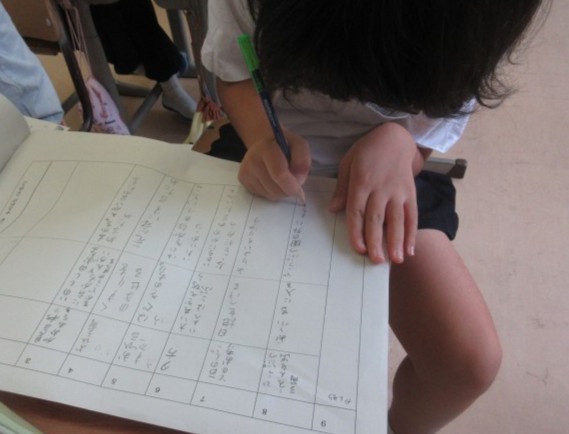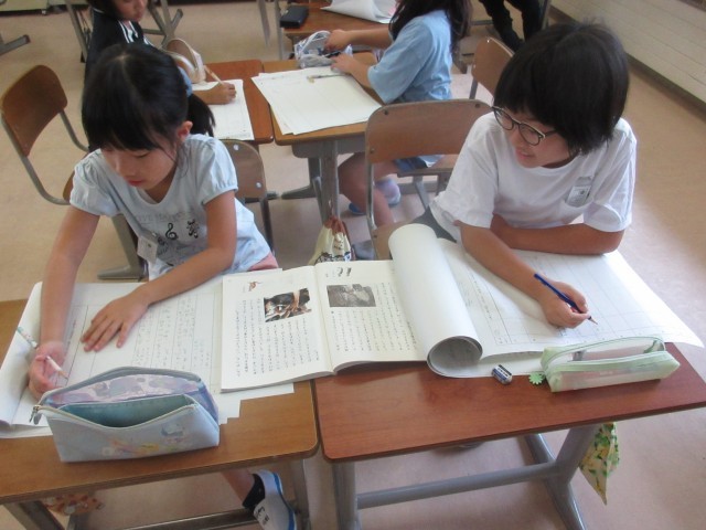 一人一人、学習課題をつくり、本文への書きこみをしたり、ワークシートに整理したりして一人学習を行いました。