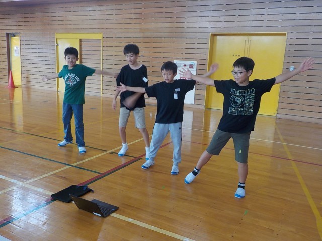 学習発表会の練習の様子です。何度も動画を見ながら繰り返し練習をしている姿が見られます。少しずつ息の合ったダンスになってきました。