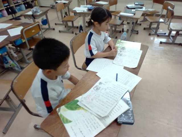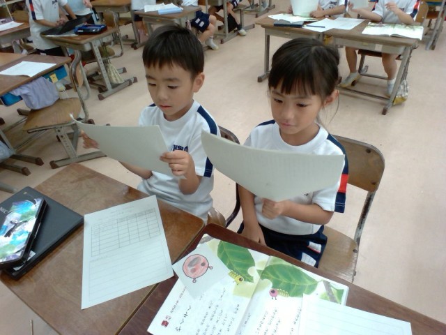 国語科では、音読発表会に向けてペアやグループで音読練習をしました。ワークシートに音読の工夫を書き込んだり、動画をとって見直したりして、役になりきって音読できるように練習しました。何度も繰り返し声に出して練習することができました。
