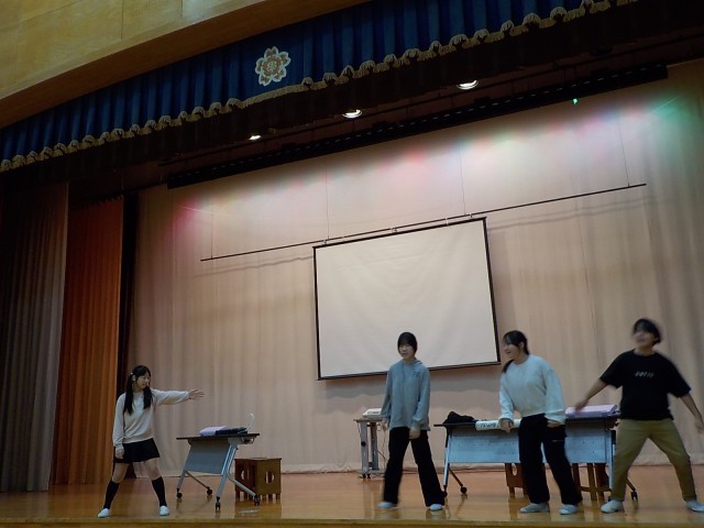 校内発表会の演技を見て、お互いにアドバイスをし合いました。土曜日の本番に向けて、よりよいものにしようと練習を重ねました。